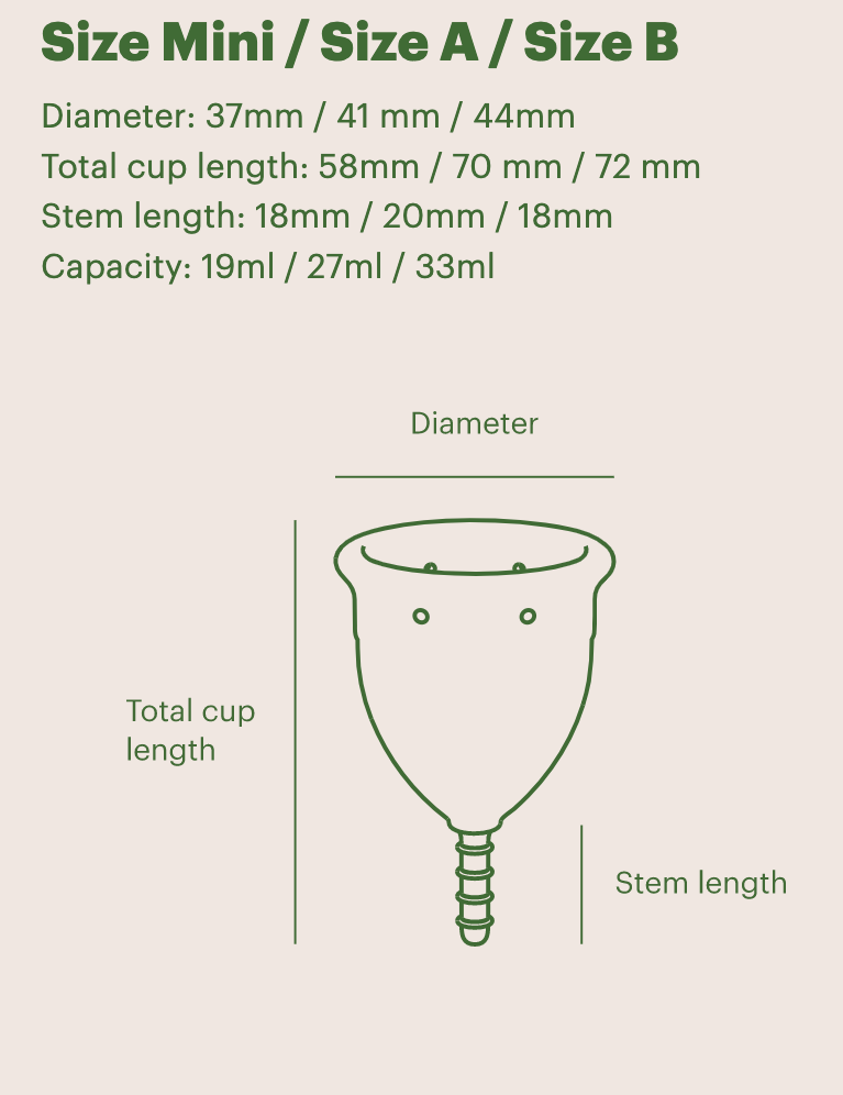 Menstrual cup: 100% uncoloured medical-grade silicone, produced in Germany