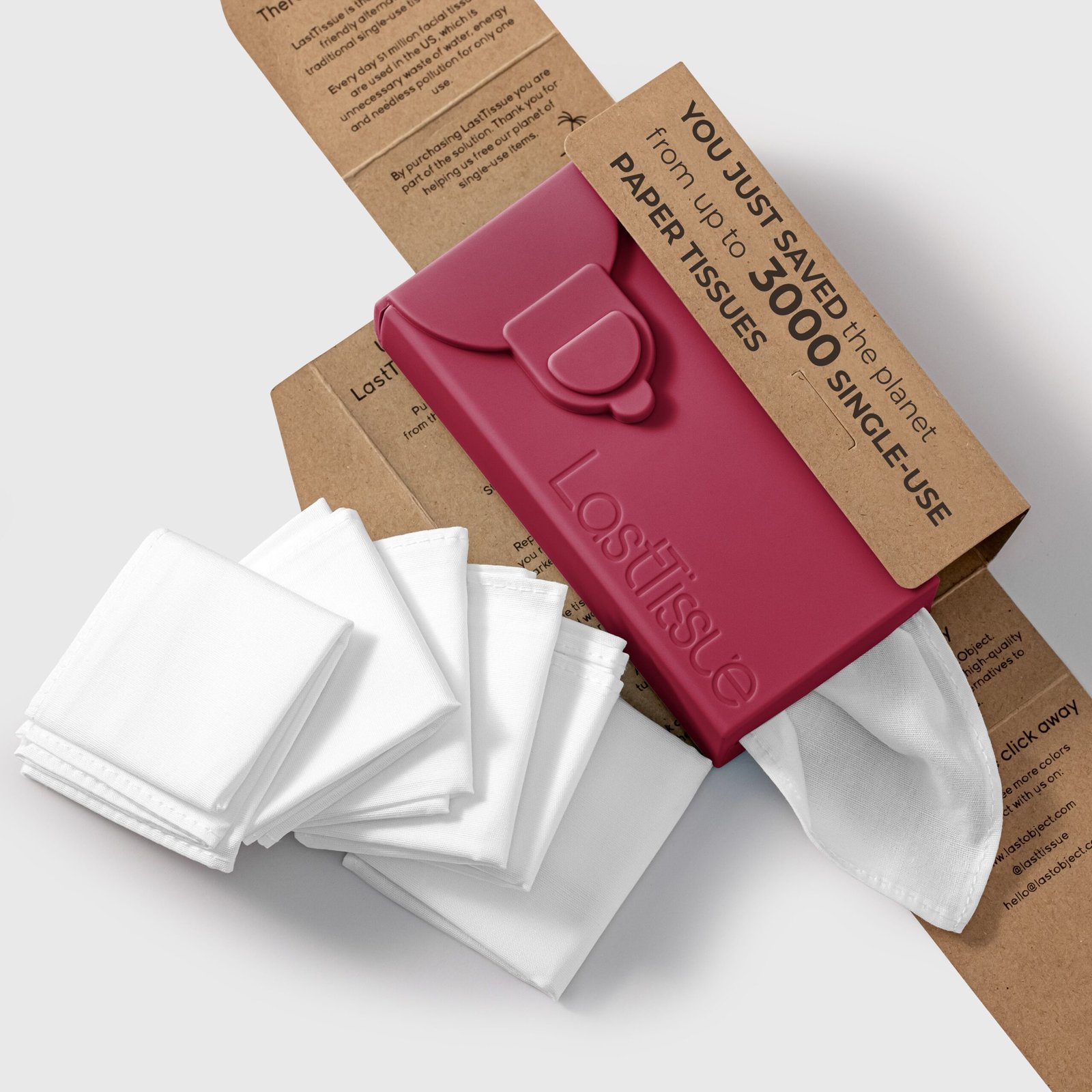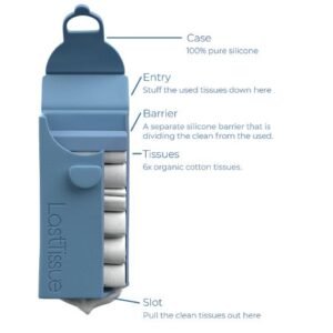 LastTissues are more environmentally-friendly like handkerchiefs but have the added convenience of a single-use tissue pack. One LastTissue pack contains six reusable tissues that you can use on the go and store appropriately in a practical, hygienic case until the next wash.