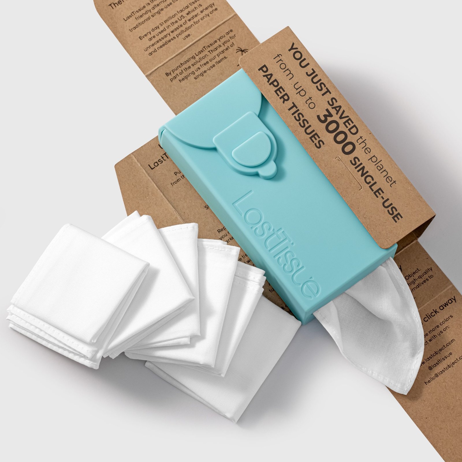 Each of the six reusable tissues lasts up to 520 uses, meaning one LastTissue pack replaces as many as 3,100+ single-use tissues. To further extend the life of LastTissues, wash them in a mesh laundry bag.